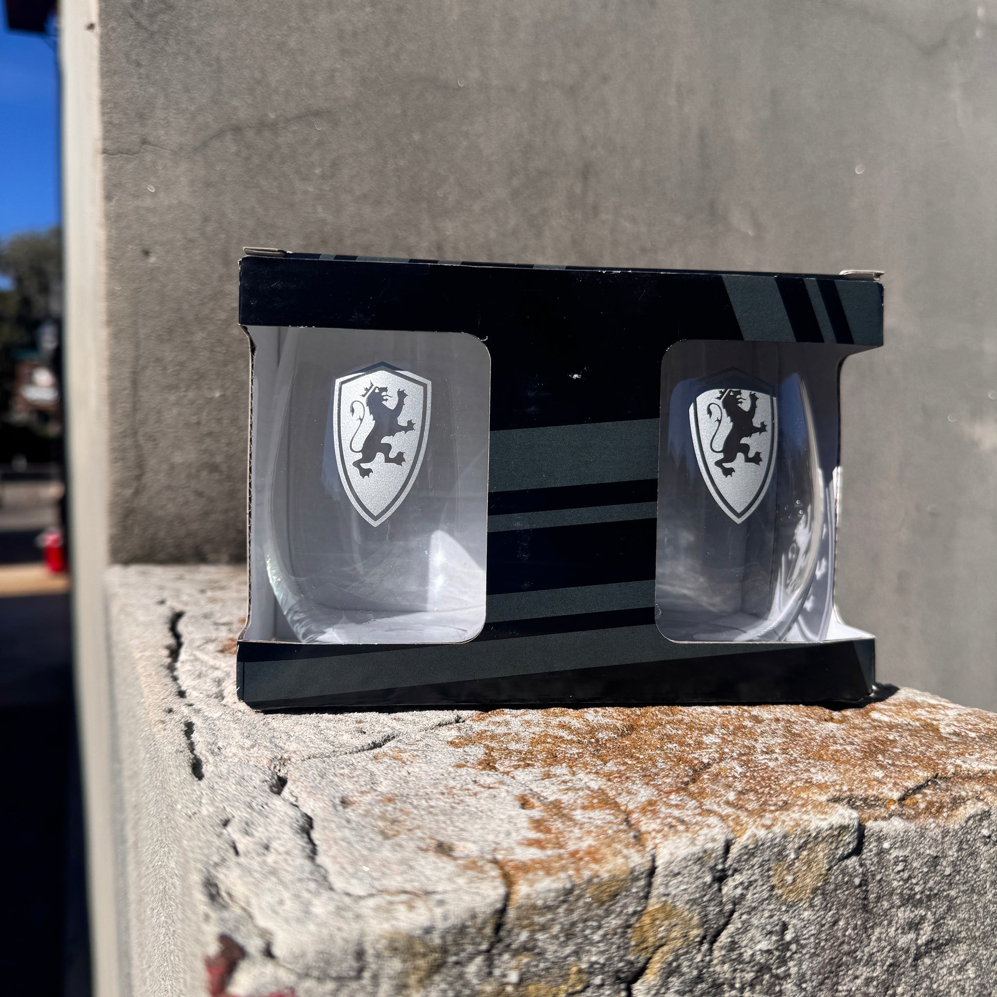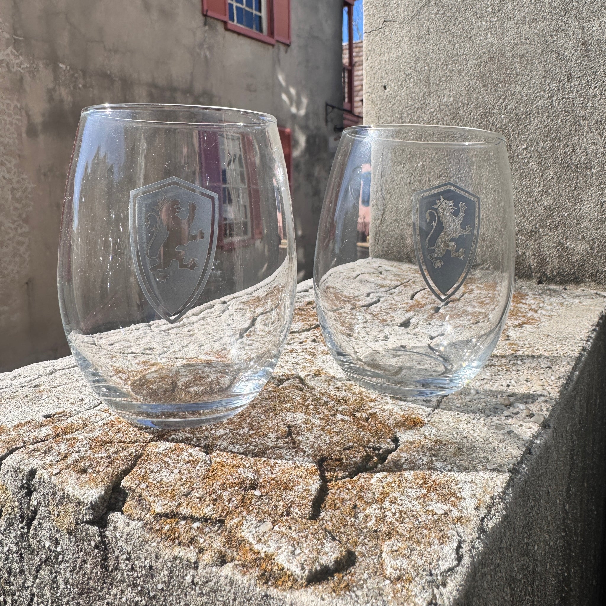 Prepacked two stemless wine glasses with Flagler College shield logo imprinted on each glass. *To prolong the life of the decoration, hand wash only. Use only non-abrasive detergents or...